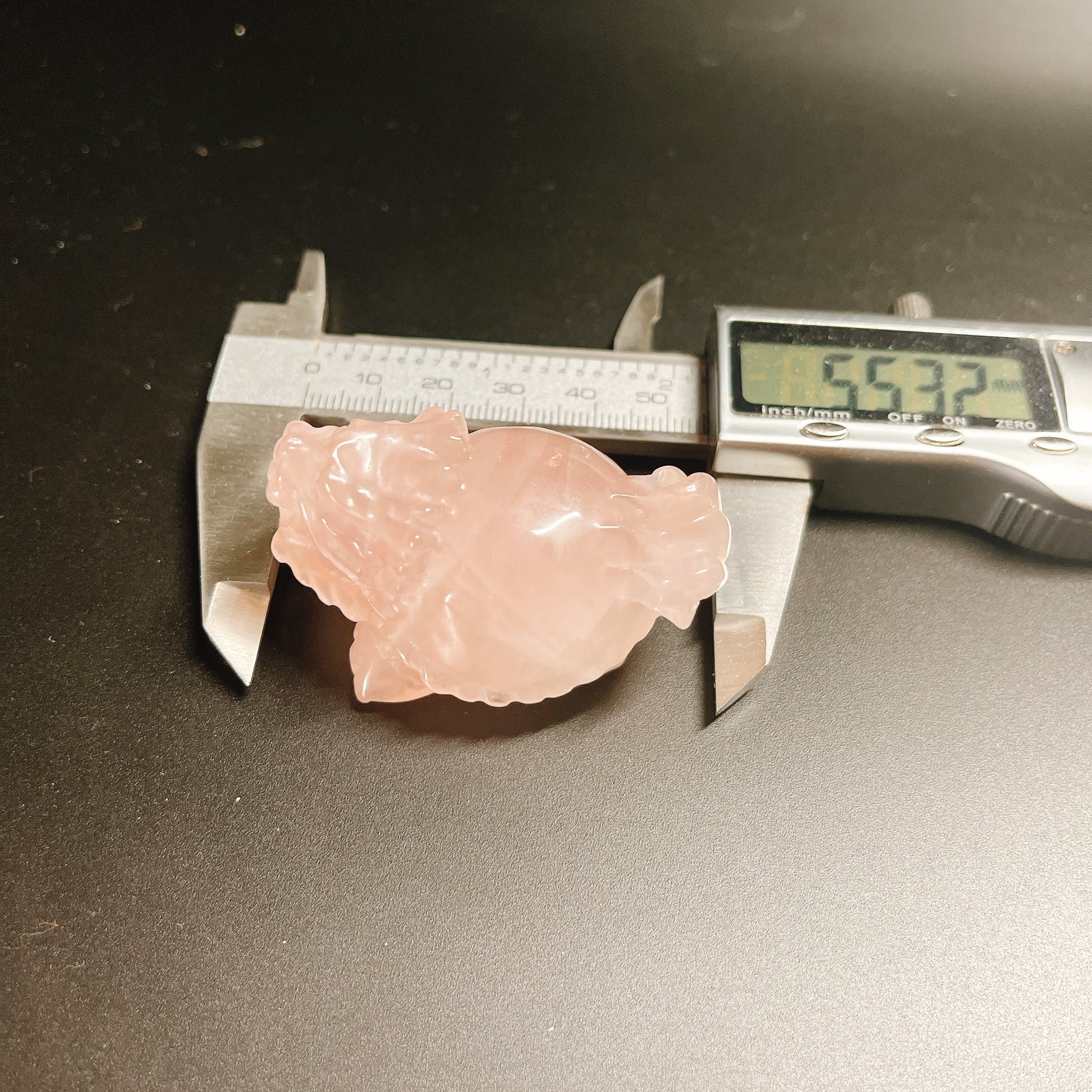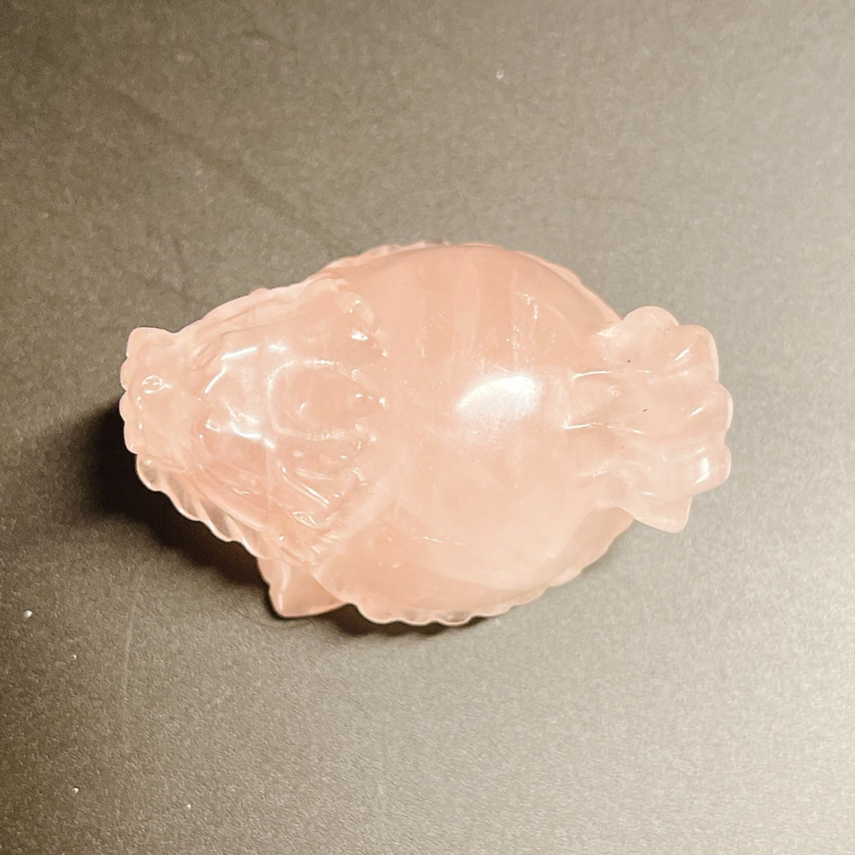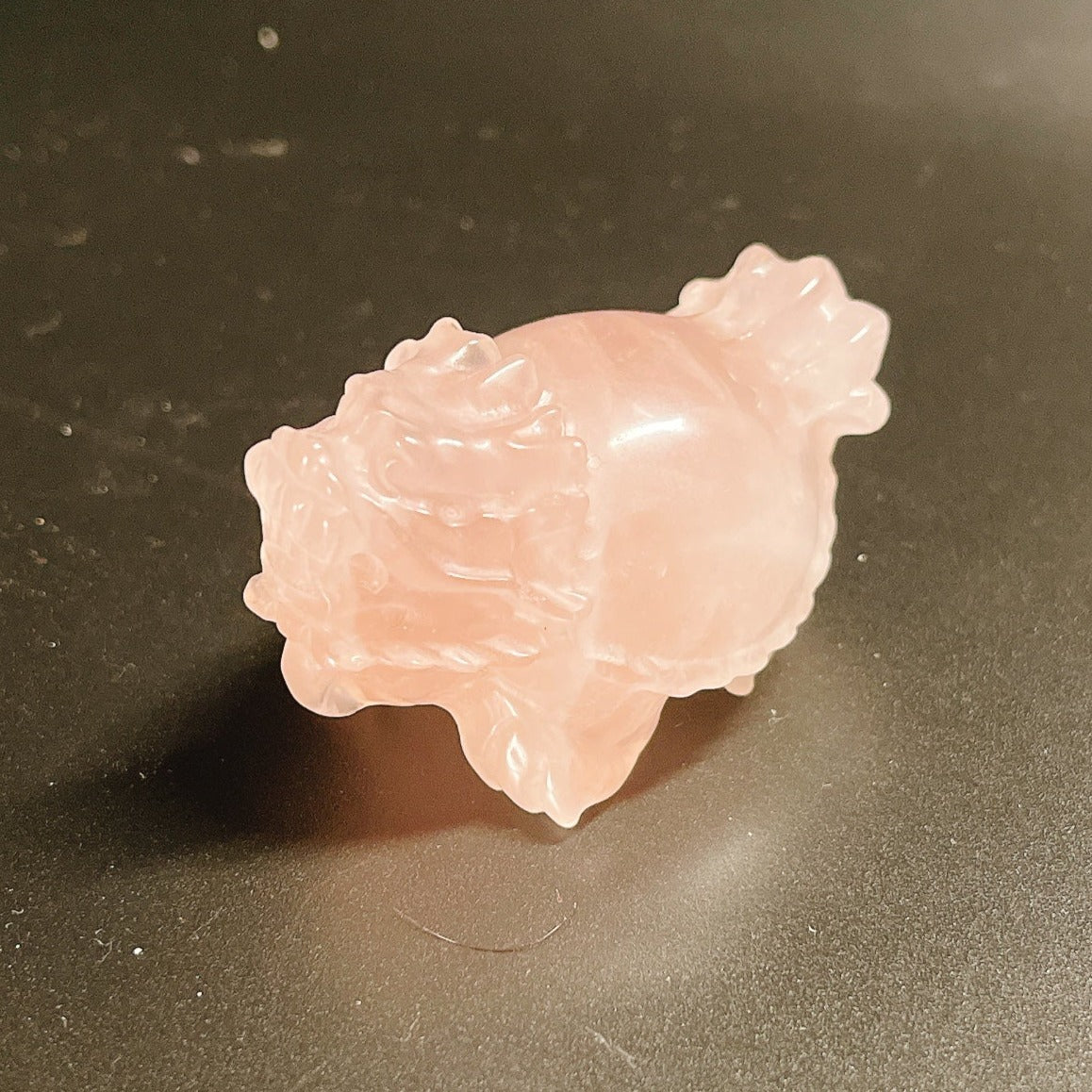 龍亀(ロングイ)が彫刻されたローズクオーツです。