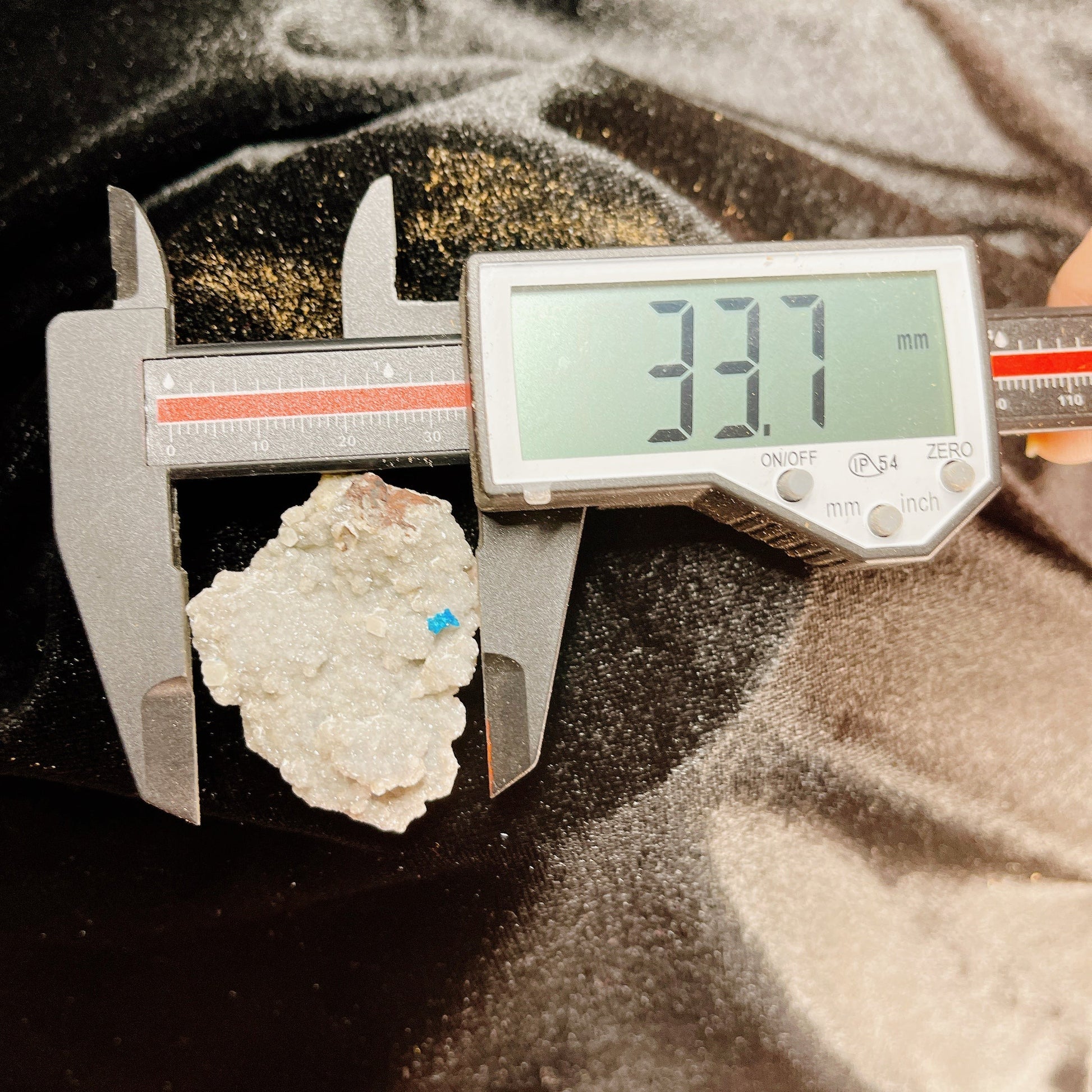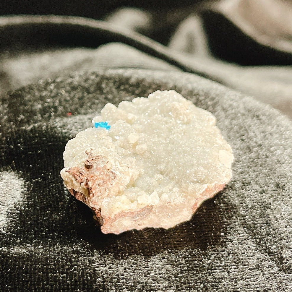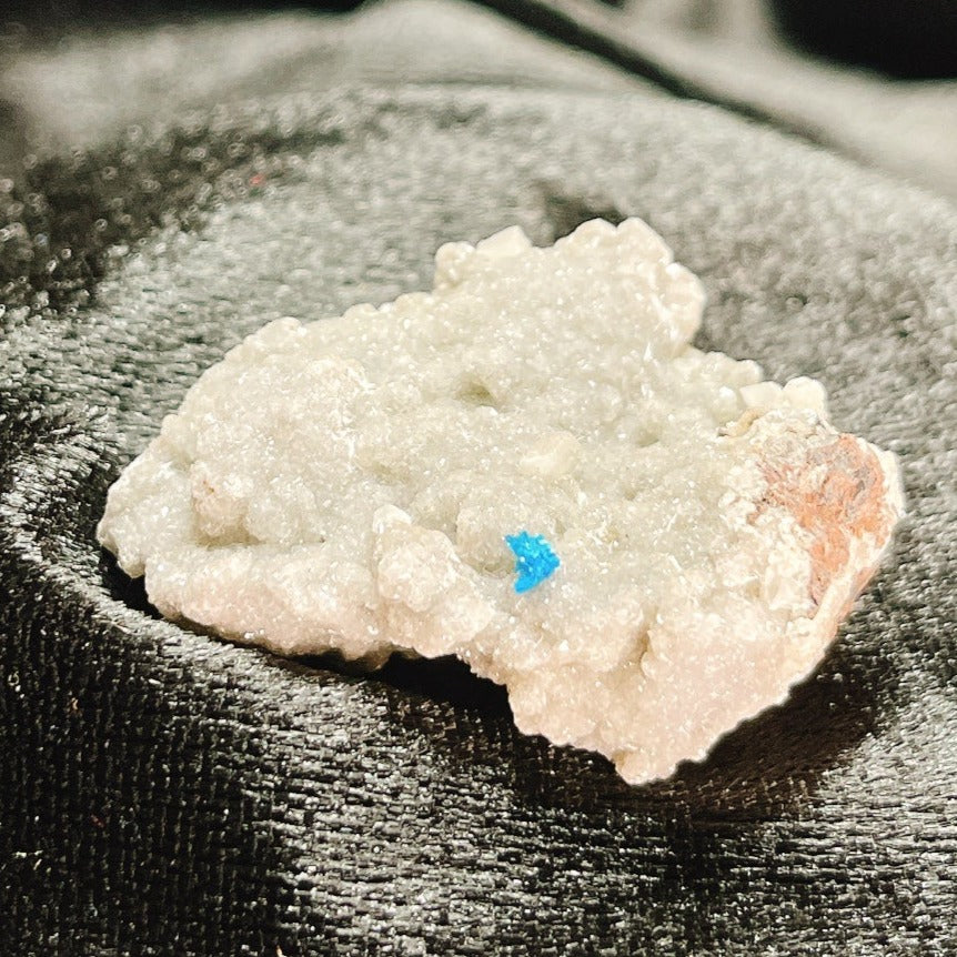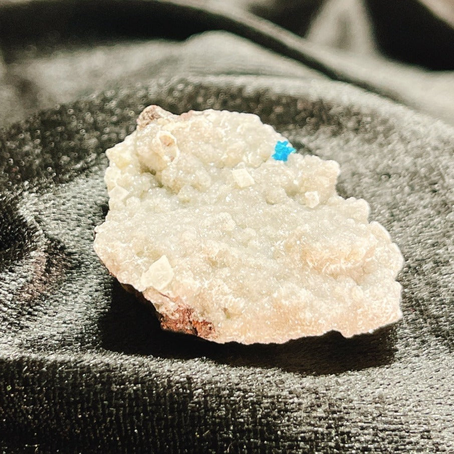 特徴は針状の結晶が放射状に伸びることにより形成される金平糖のような丸くモコモコとした結晶、そしてこの鮮やかなコバルトブルーです。