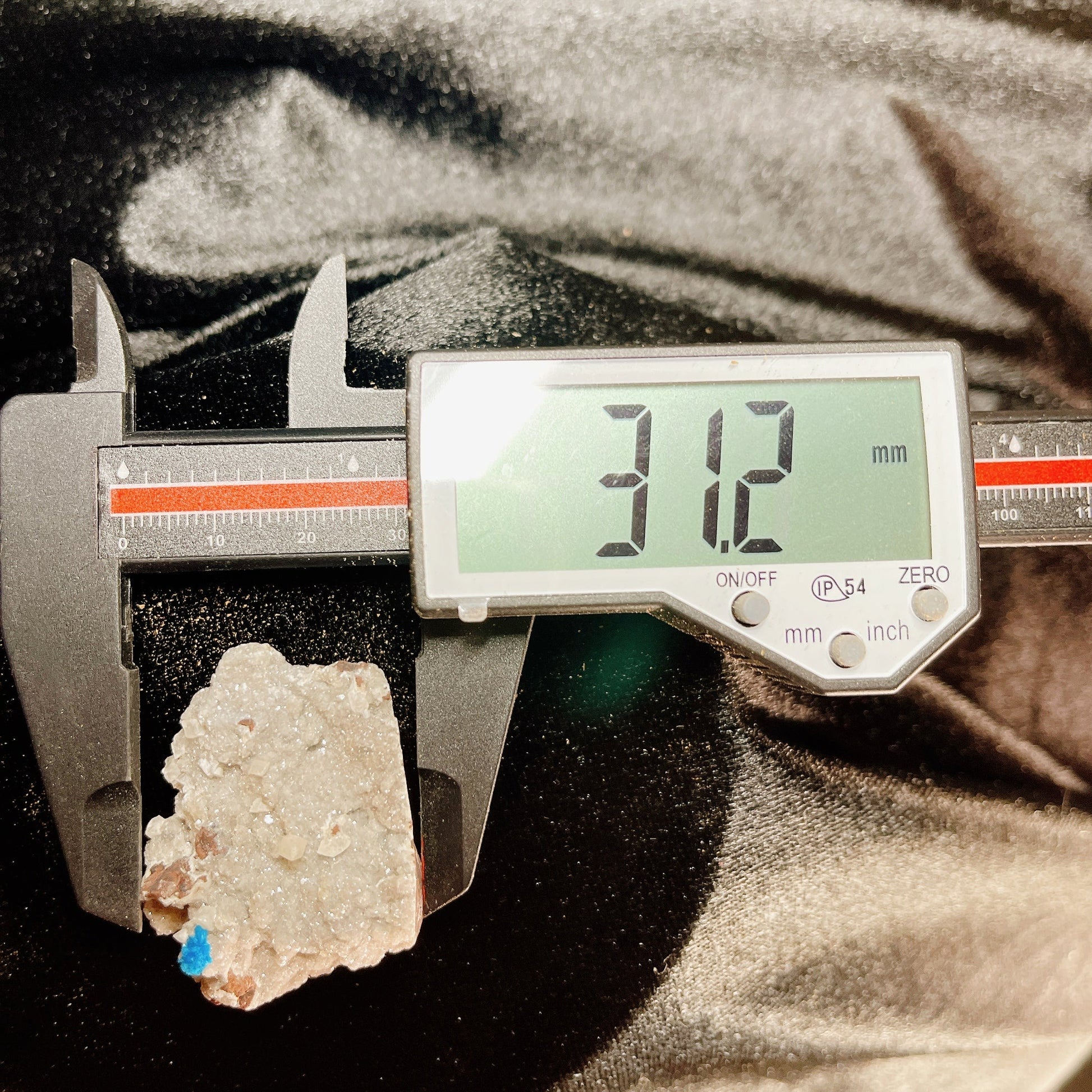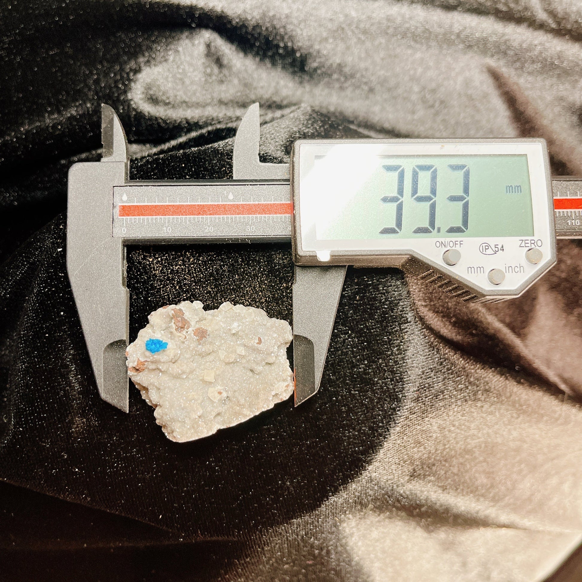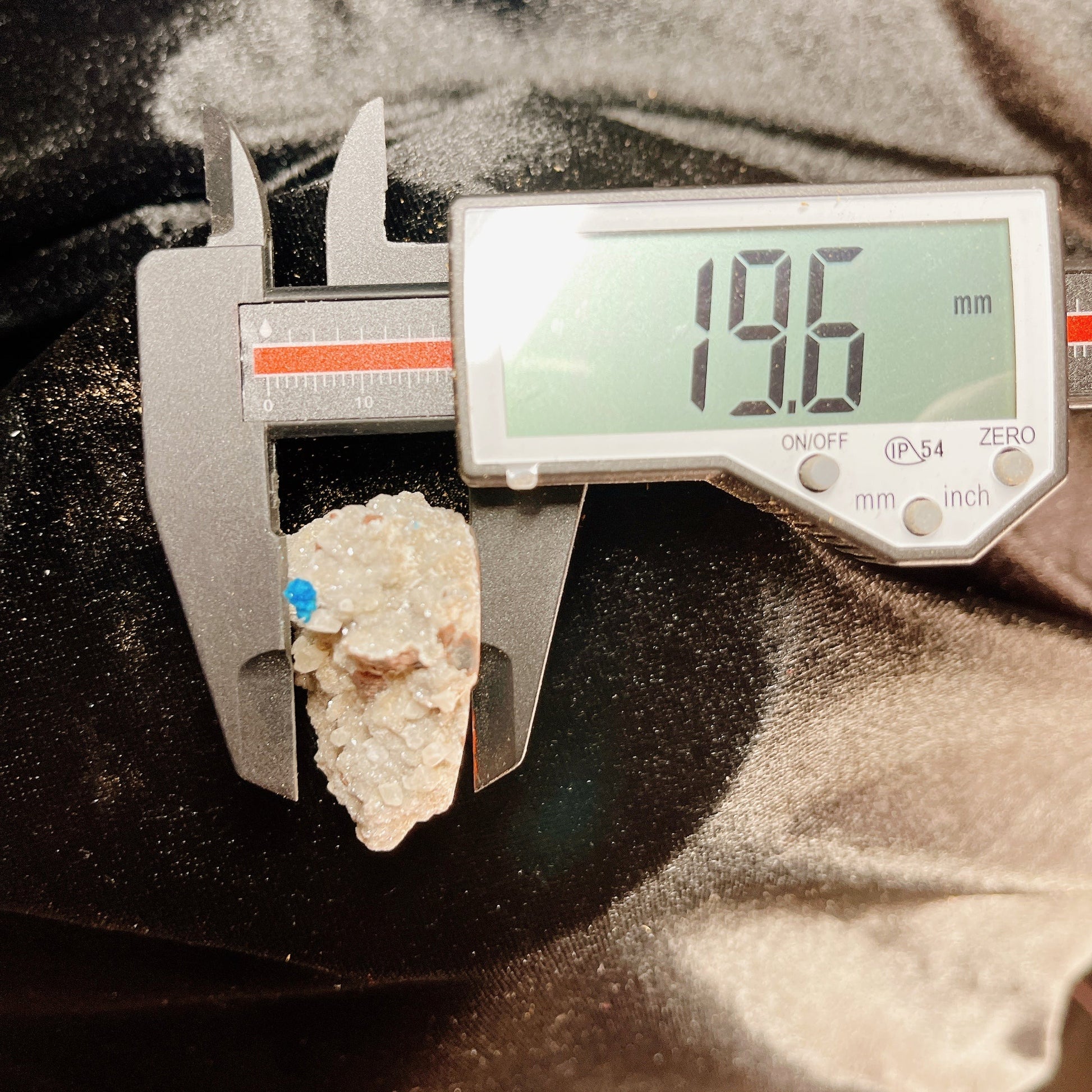 特徴は針状の結晶が放射状に伸びることにより形成される金平糖のような丸くモコモコとした結晶、そしてこの鮮やかなコバルトブルーです。