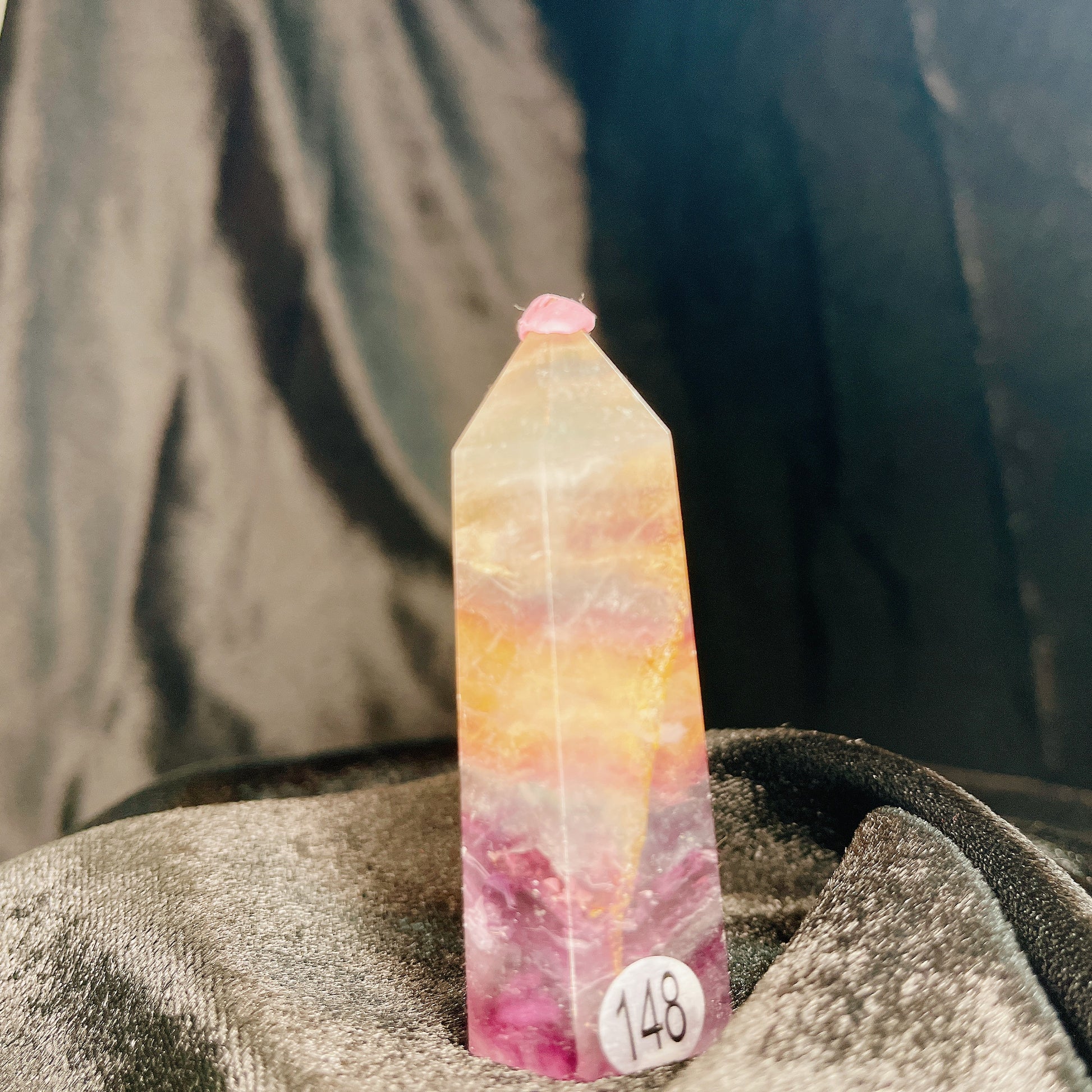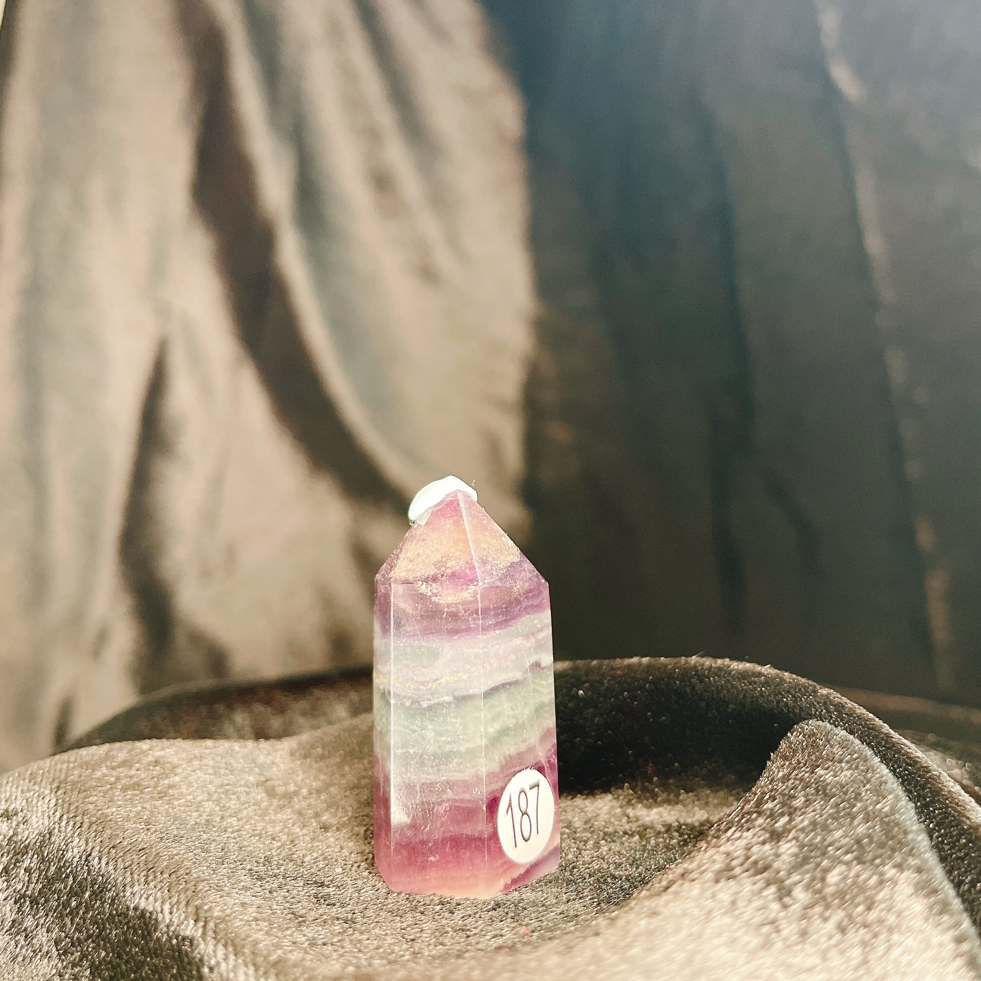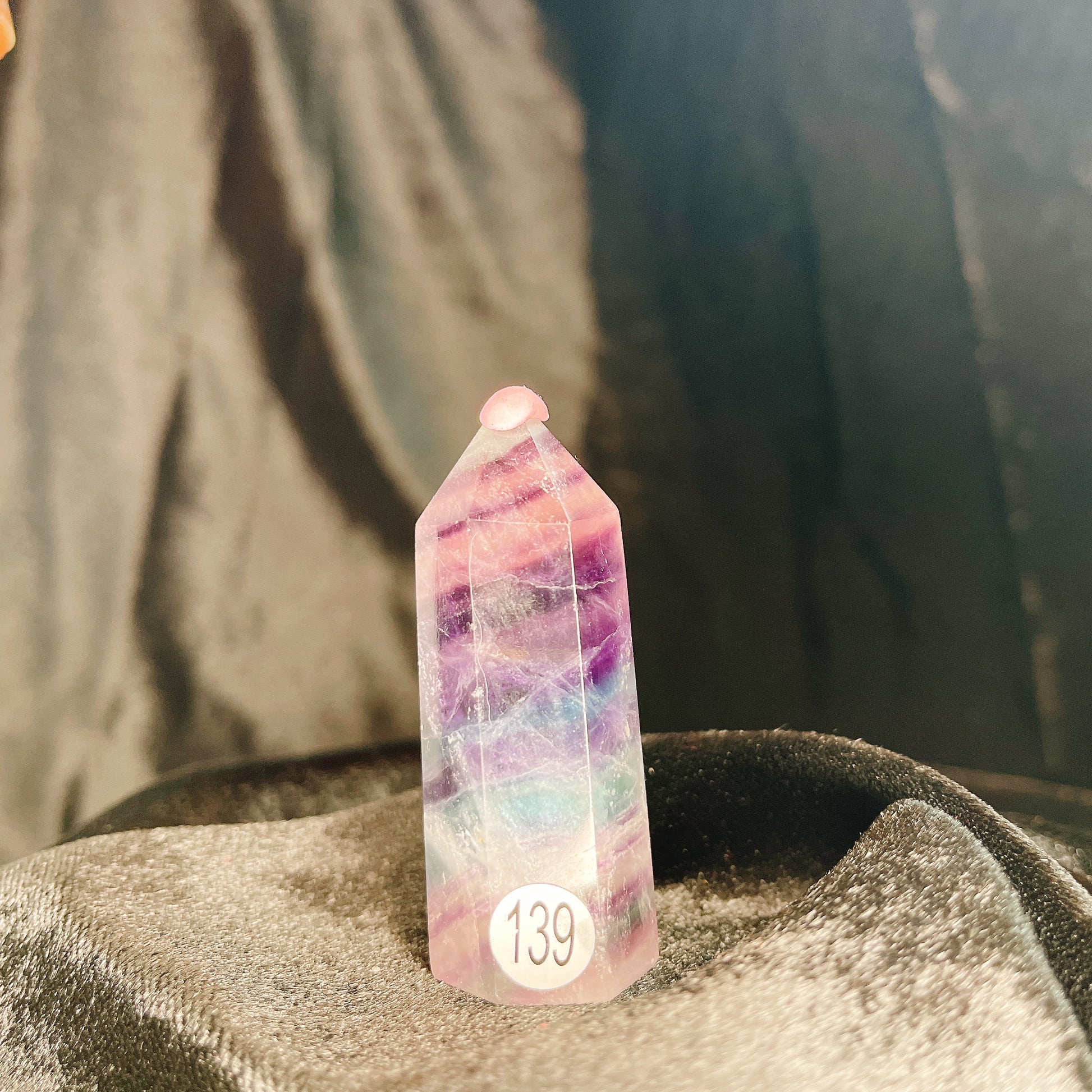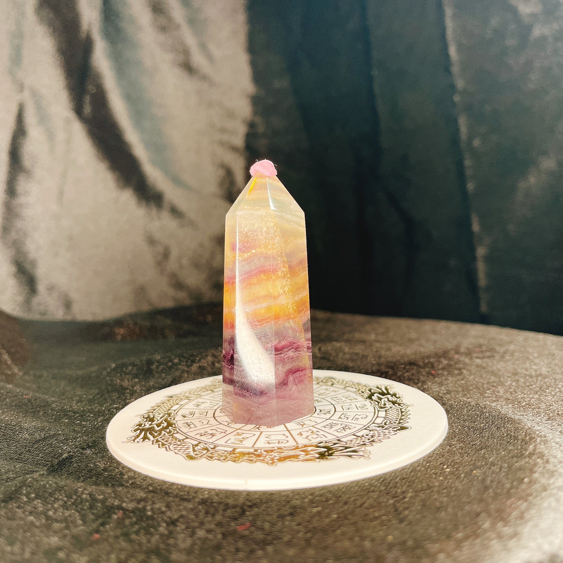 天然石のフローライトの六角柱ポイントです。空間の浄化・福の呼び込みにご利用ください。
