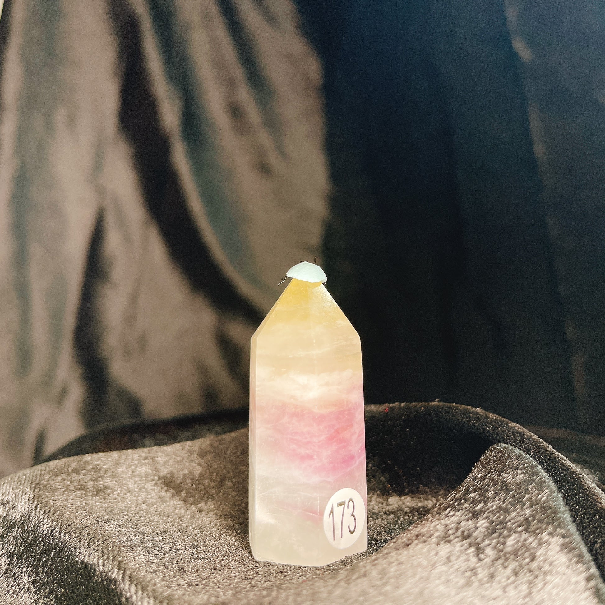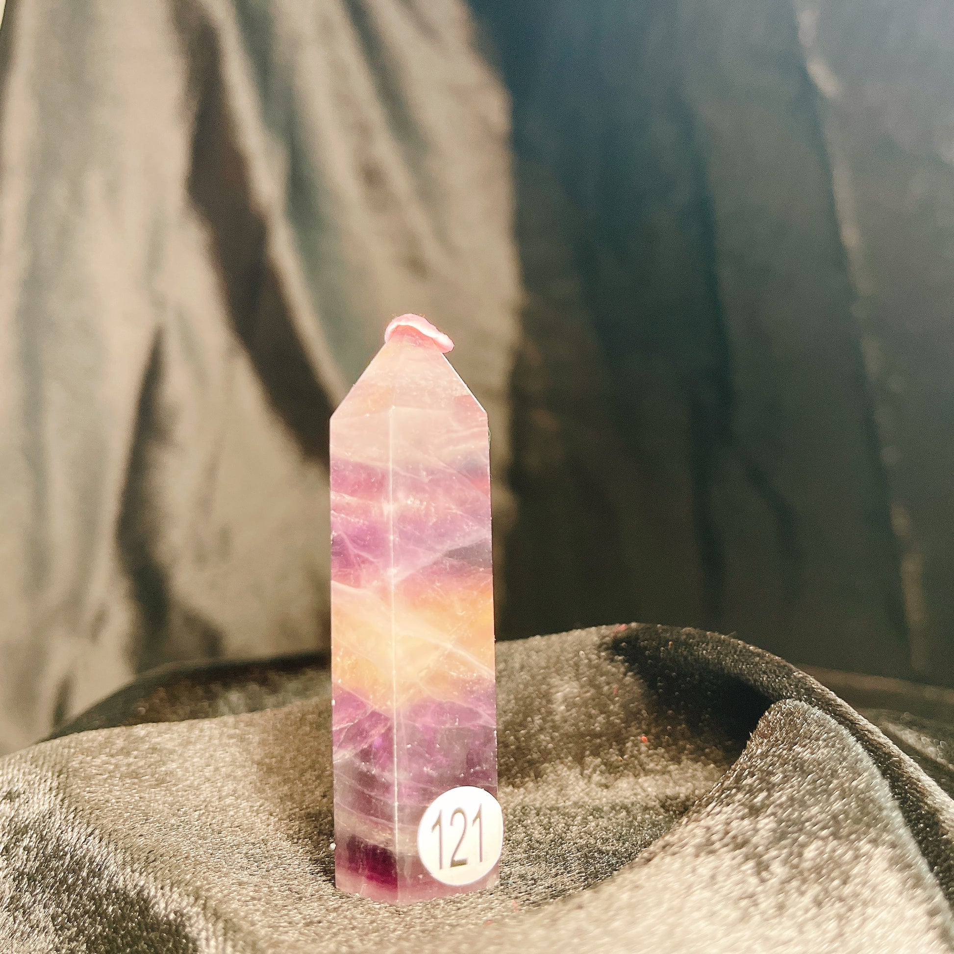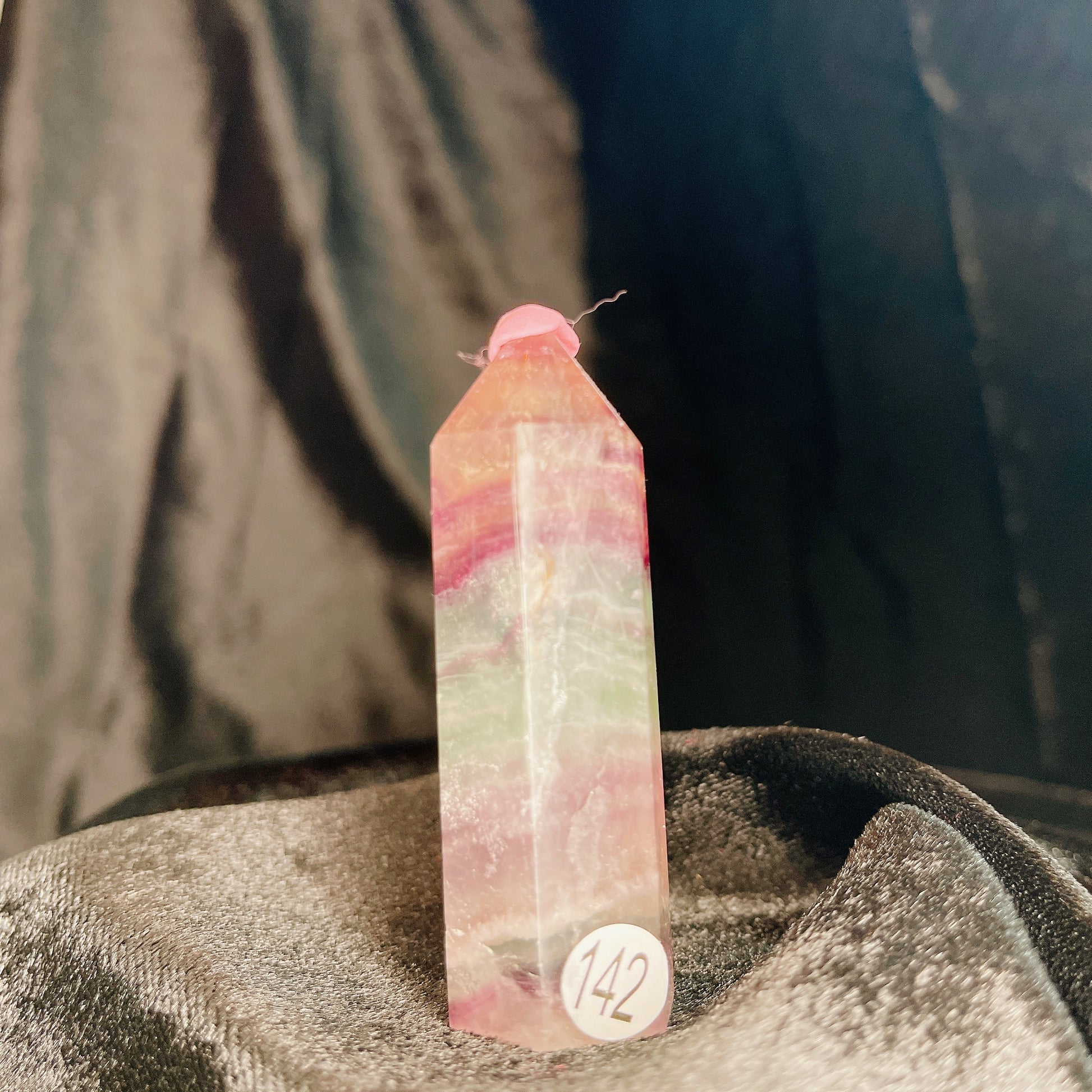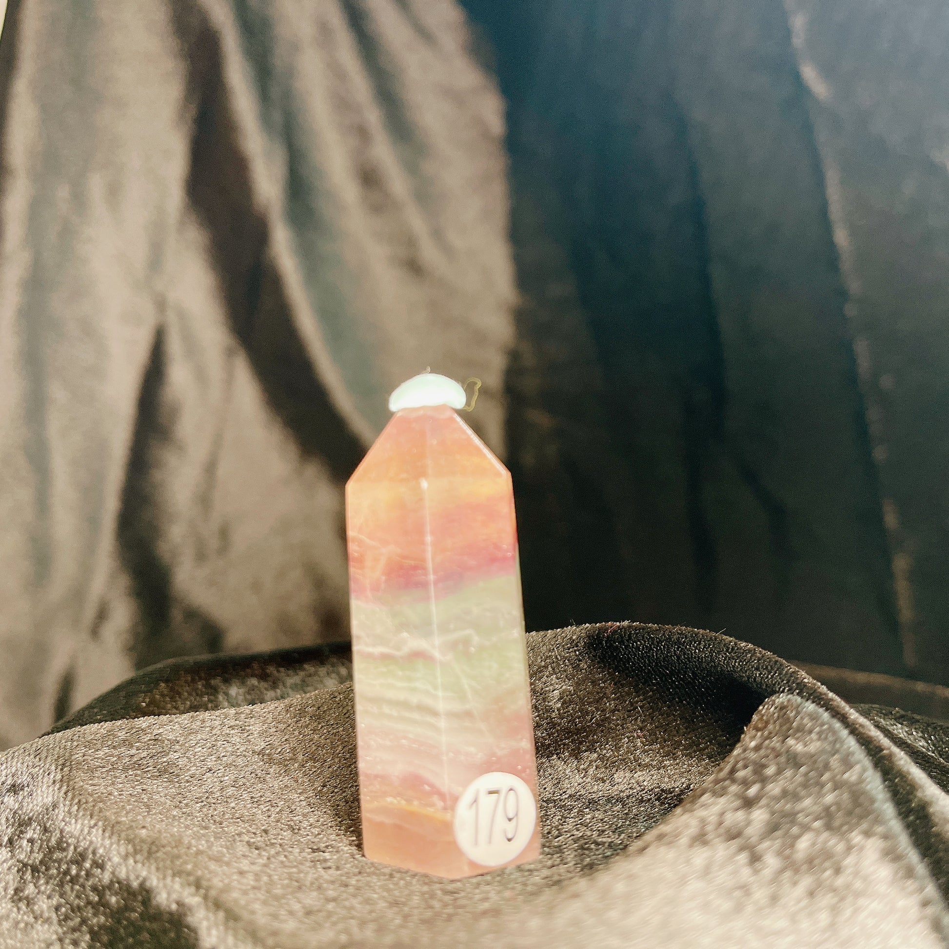 天然石のフローライトの六角柱ポイントです。空間の浄化・福の呼び込みにご利用ください。