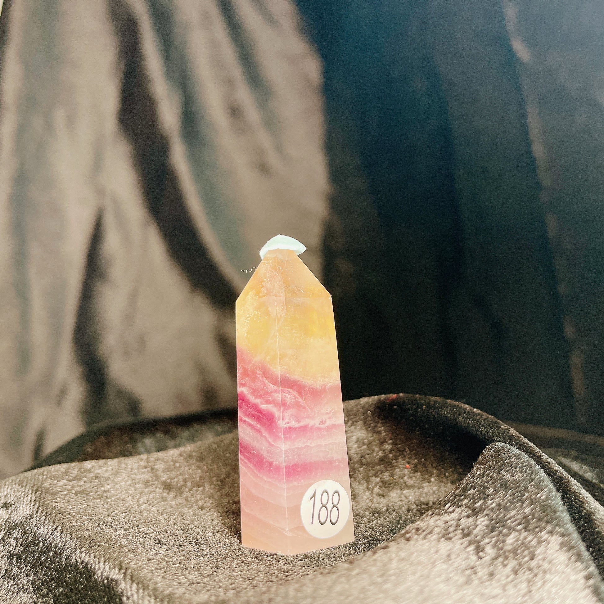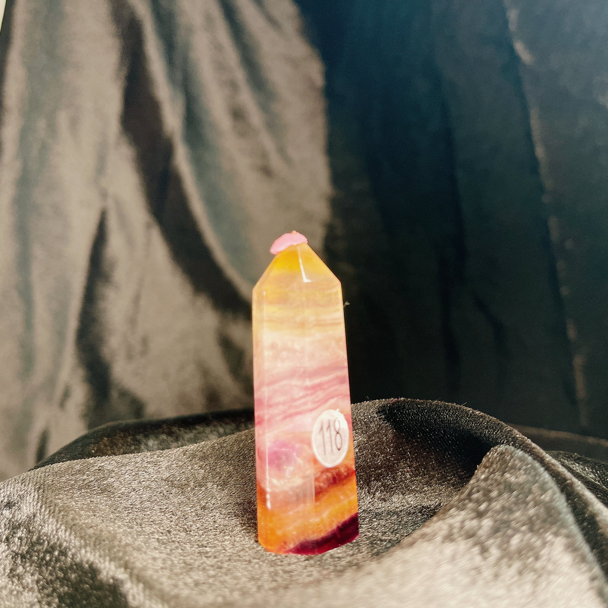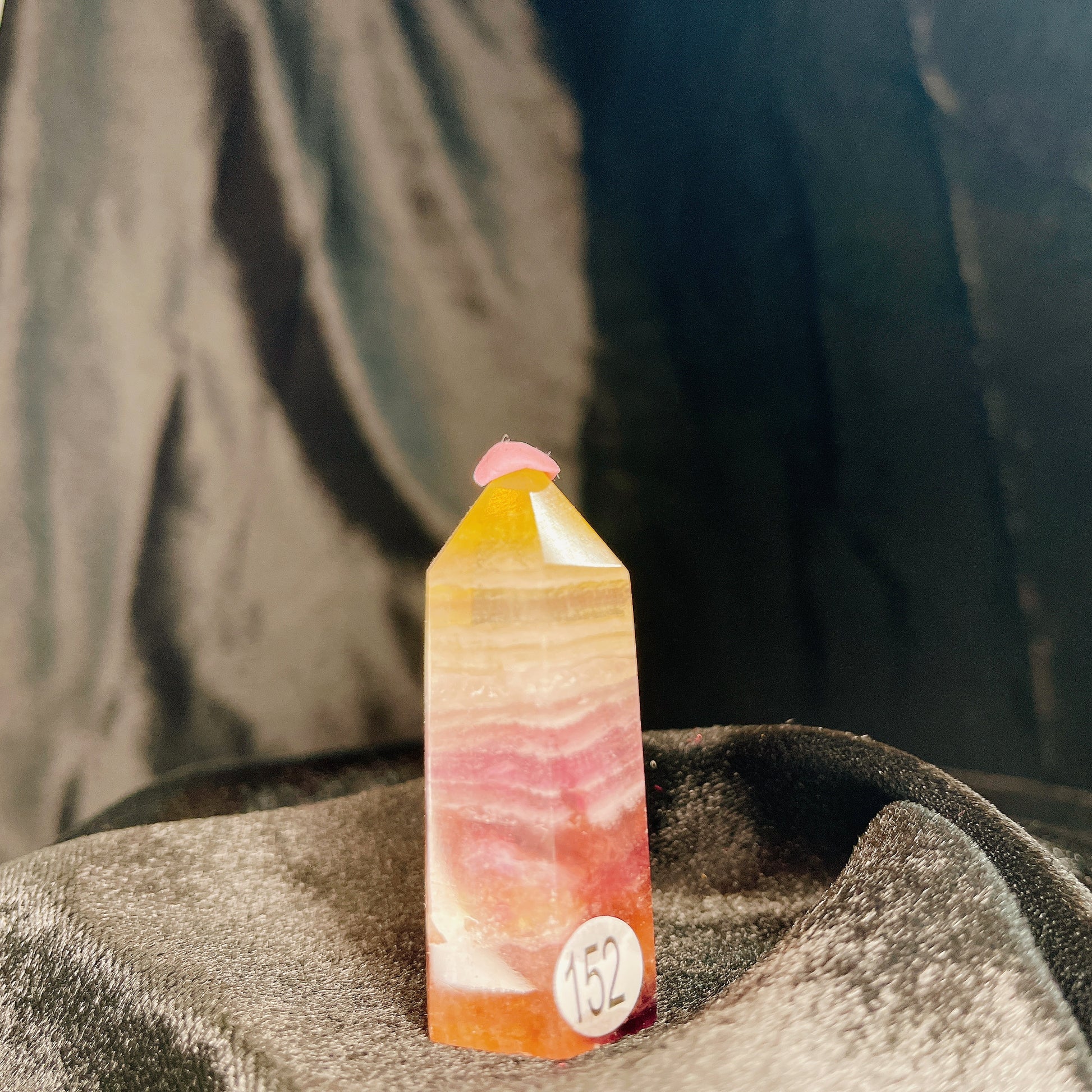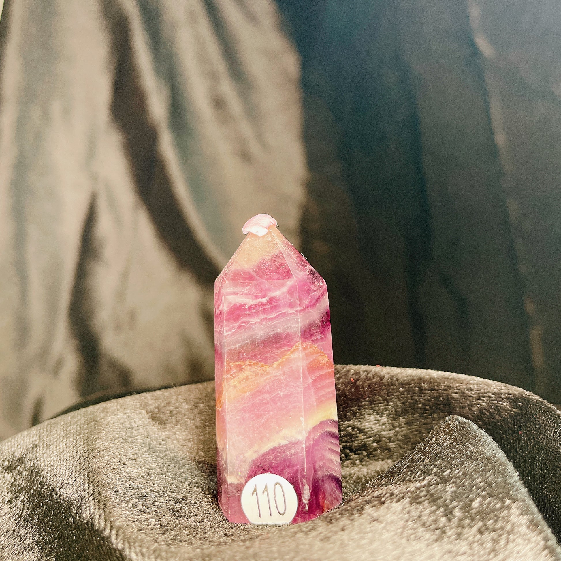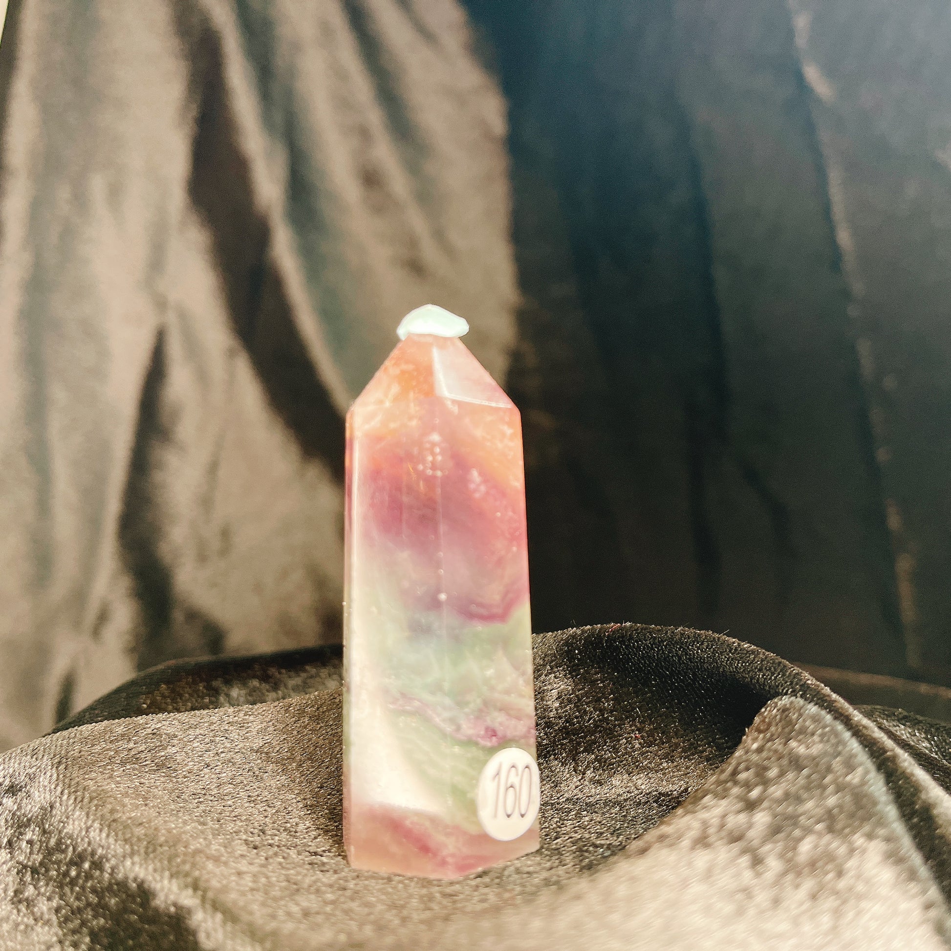 天然石のフローライトの六角柱ポイントです。空間の浄化・福の呼び込みにご利用ください。