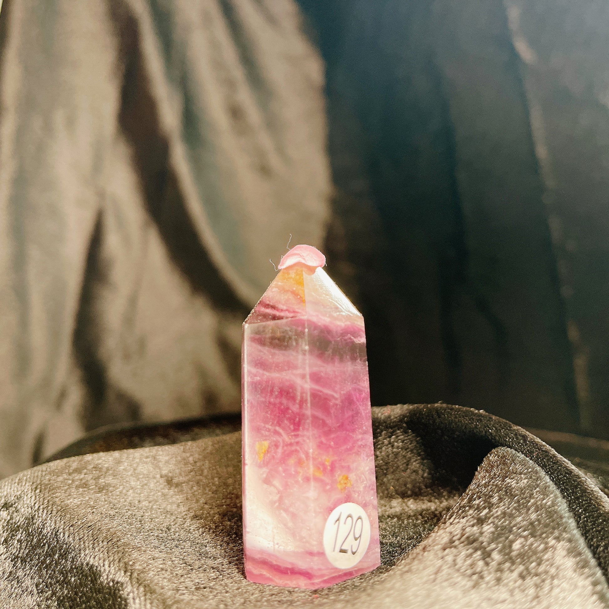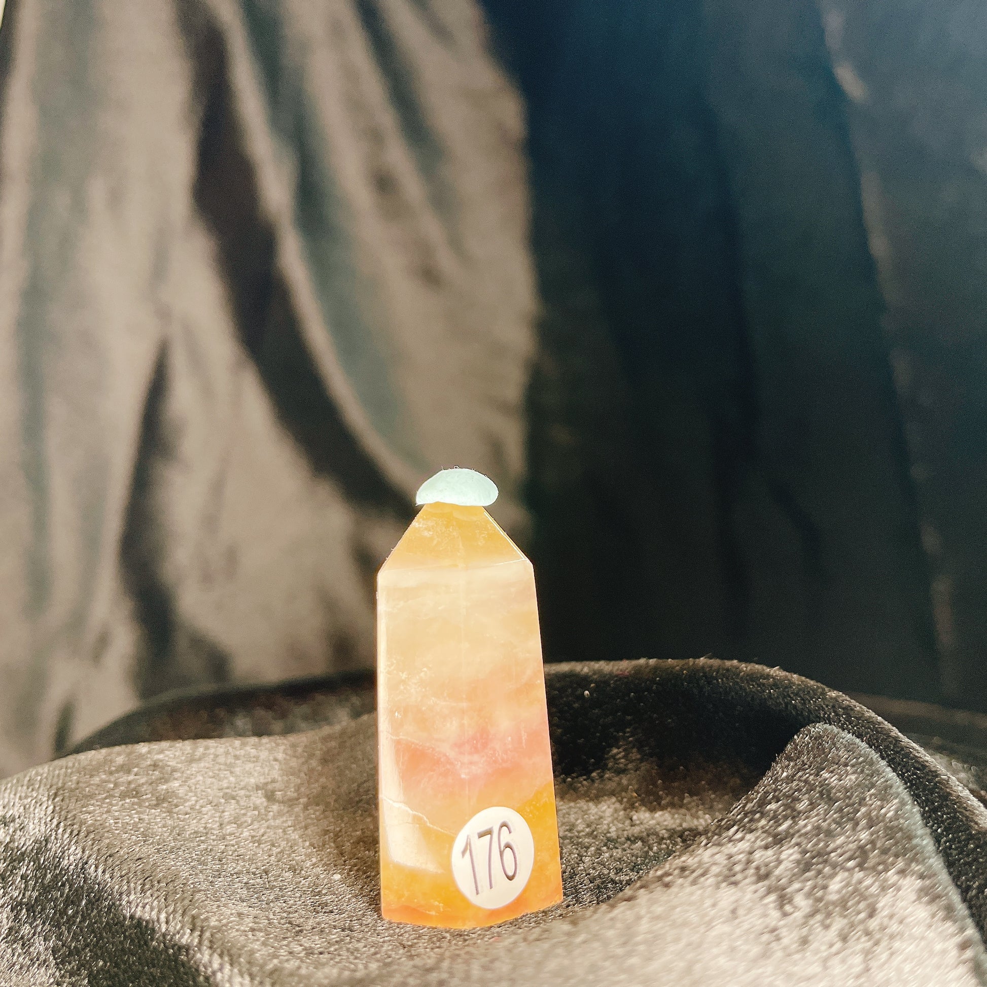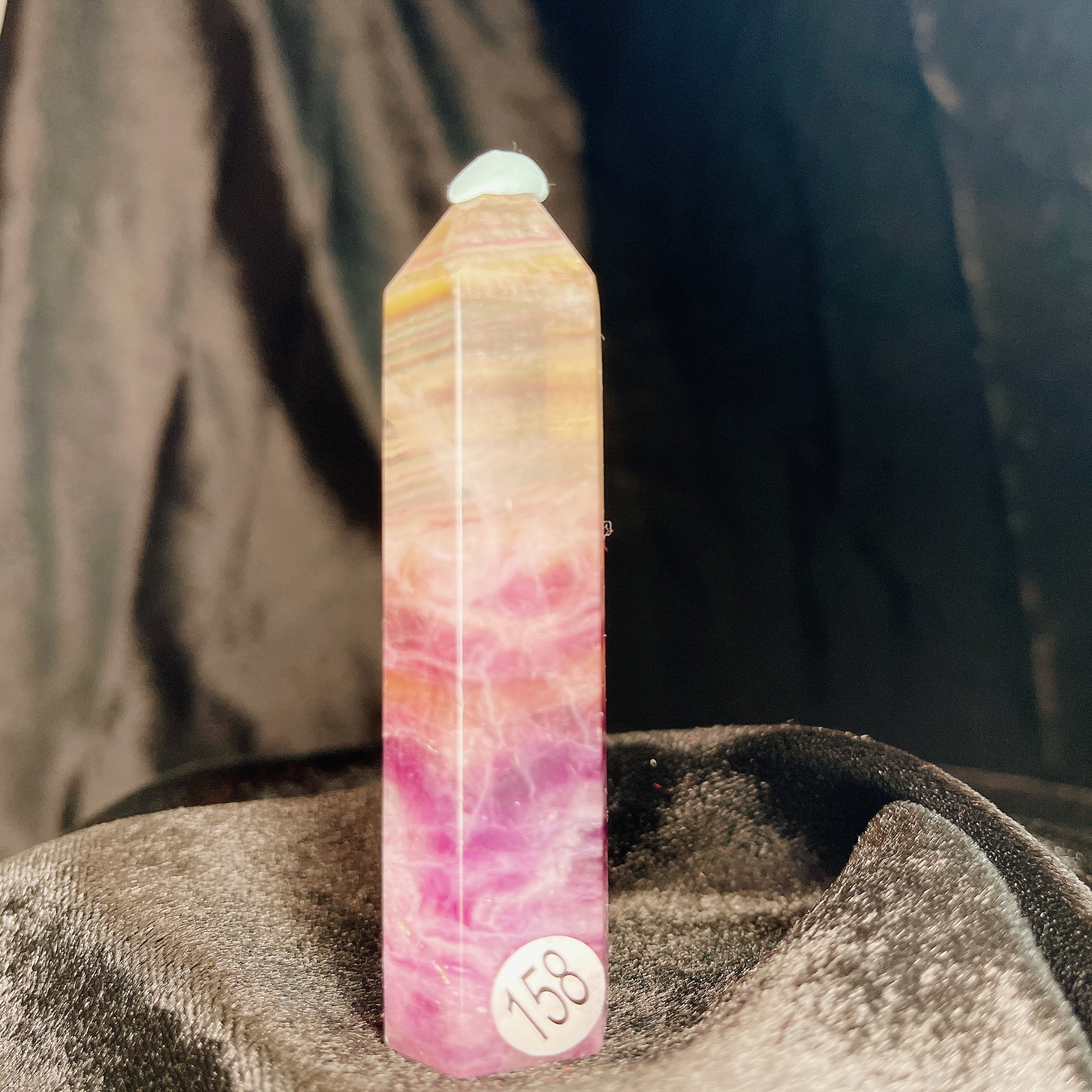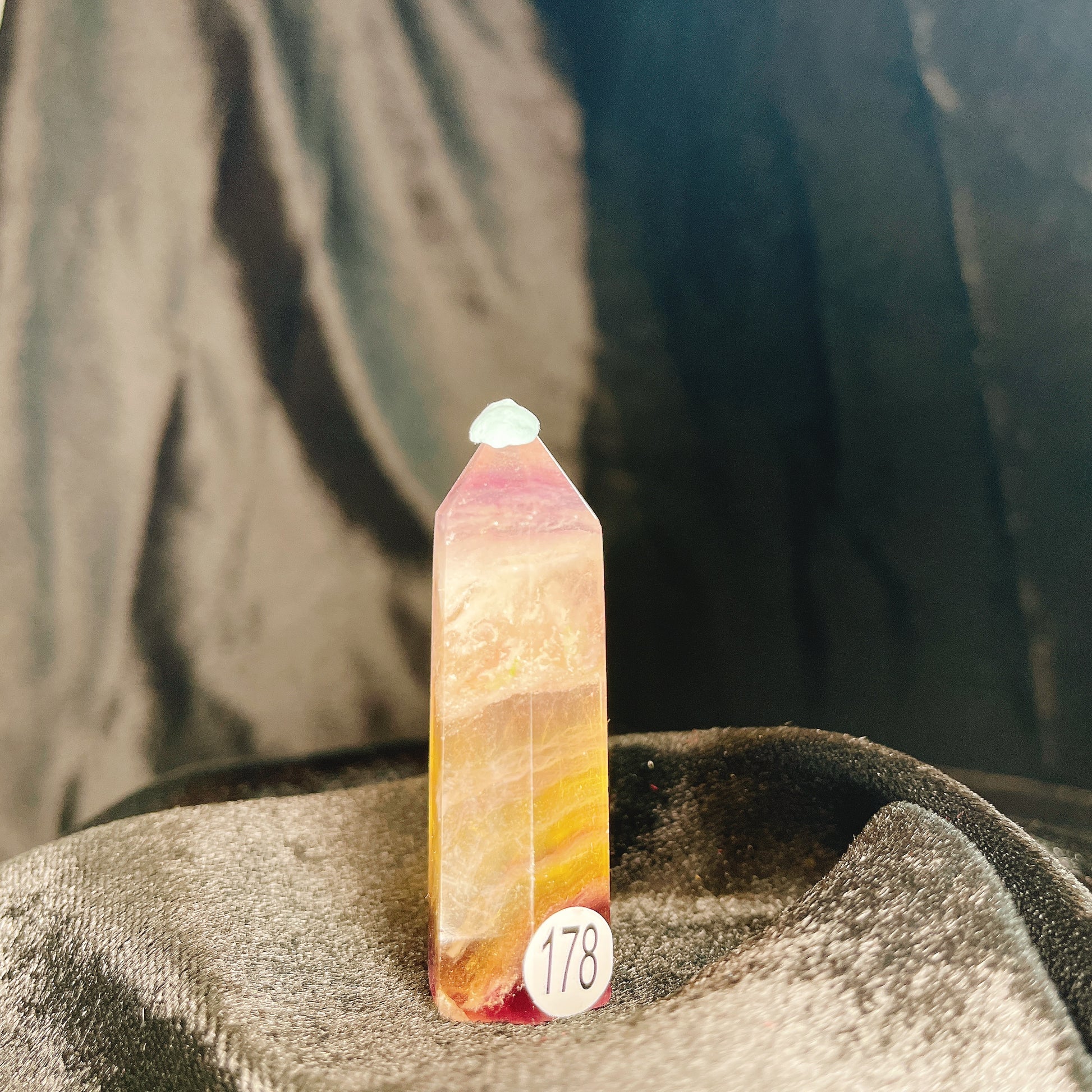 天然石のフローライトの六角柱ポイントです。空間の浄化・福の呼び込みにご利用ください。