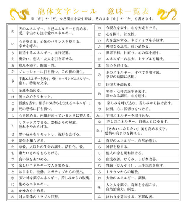 龍体文字には1文字1文字に意味があり、それぞれの固有のエネルギーが宿っているといわれています。